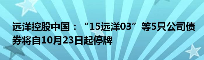 10月20日,远洋控股集团(中国)有限公司发布公告:由于公司债券“18远洋01”已调整兑付安排,且公司后续拟调整于上海证券交易所发行债券的偿付方案,为更好地服务于债券信用风险化解处置,维护债券持有人利益,经公司申请,“15远洋03”、“19远洋01”、“19远洋02”、“21远洋01”、“21远洋02”公司债券将自2023年10月23日起停牌,自2023年10月26日起按照《关于为上市期间特定债券提供转让结算服务有关事项的通知》相关规定进行后续转让并复牌。