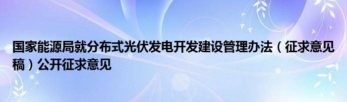 根据分布式光伏发电行业面临的新形势新任务新要求,为进一步促进分布式光伏发电健康可持续发展,国家能源局组织起草了《分布式光伏发电开发建设管理办法(征求意见稿)》,并征求了有关方面意见。现向社会公开征求意见,时间为2024年10月9日至11月8日。