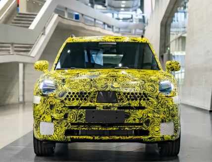 跨界车仍然完全伪装,但看起来比即将推出的车型更大、更坚固;它的位置明显更高,并且车顶线的锥度更小。虽然迷幻的黑色和黄色包裹物隐藏了大部分更精细的设计细节,但我们可以看出 Countryman 失去了翻盖式引擎盖,但保留了自 2010 年 21 世纪重新启动以来铭牌特色的厚大灯边框。外门把手现在与门皮平齐安装,格栅中的大传感器暗示有多种驾驶辅助设备可供选择。