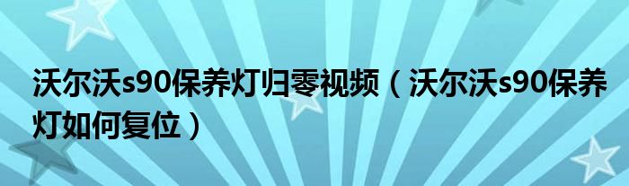 沃尔沃s90保养灯归零视频(沃尔沃s90保养灯如何复位)